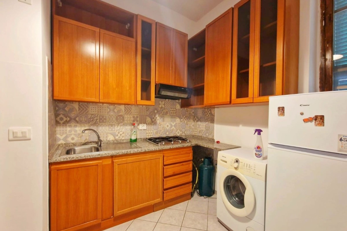Questo spazio accogliente è perfetto per chi cerca un ambiente unico dove zona cottura e sala convivono in armonia. La presenza di un bagno con finestra aggiunge praticità e comfort alla tua quotidianità.